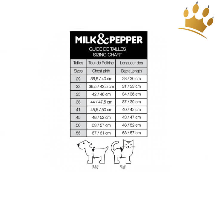 Bitte vor der Größenauswahl Ihren Hund nochmal messen. Milk & Pepper hat die Größen etwas geändert. Bitte beachten Sie unbedingt die Größentabelle.